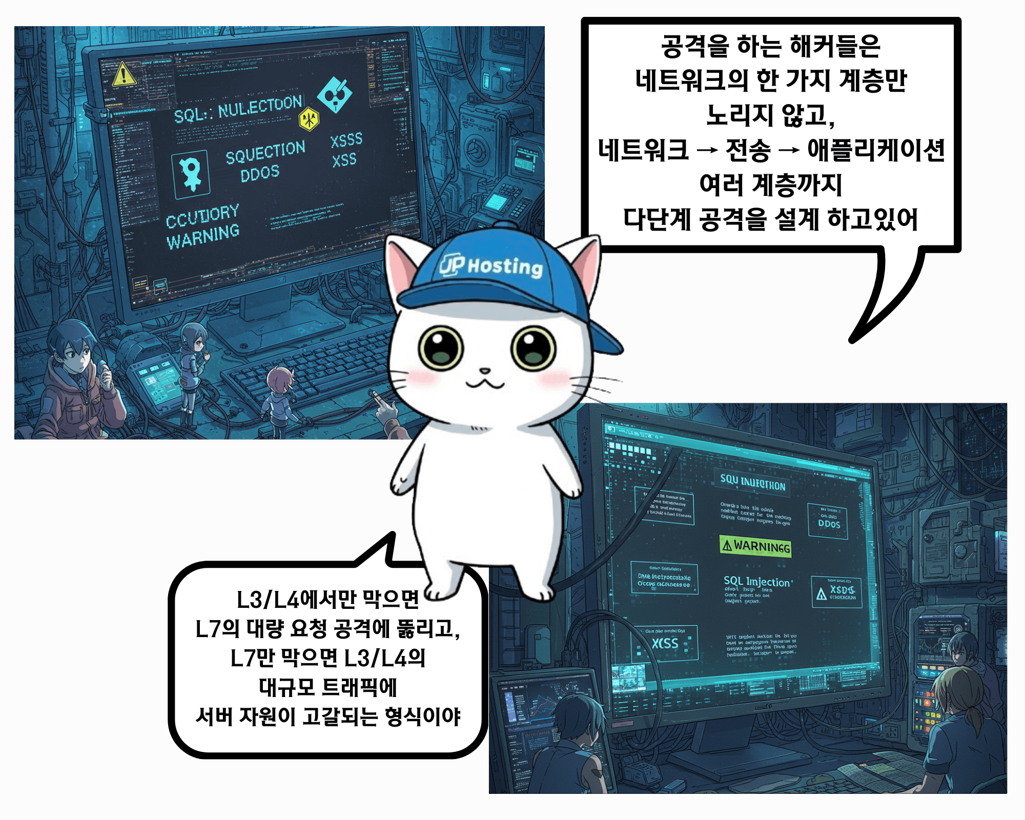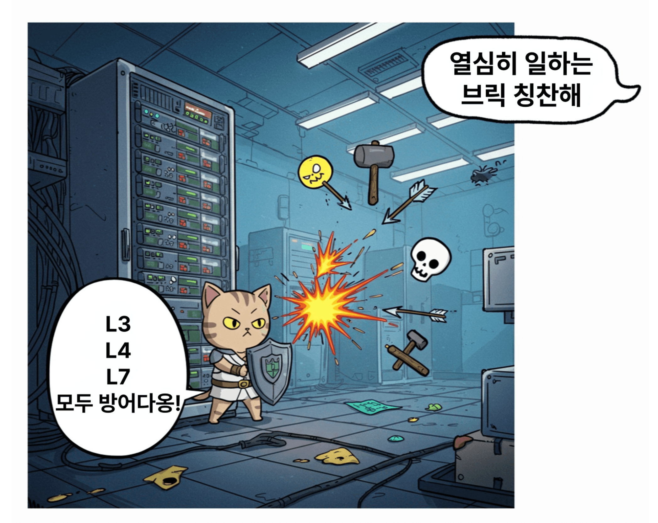 클라우드브릭은 3,4,7 계층에서의 DDoS 공격을 완화합니다.