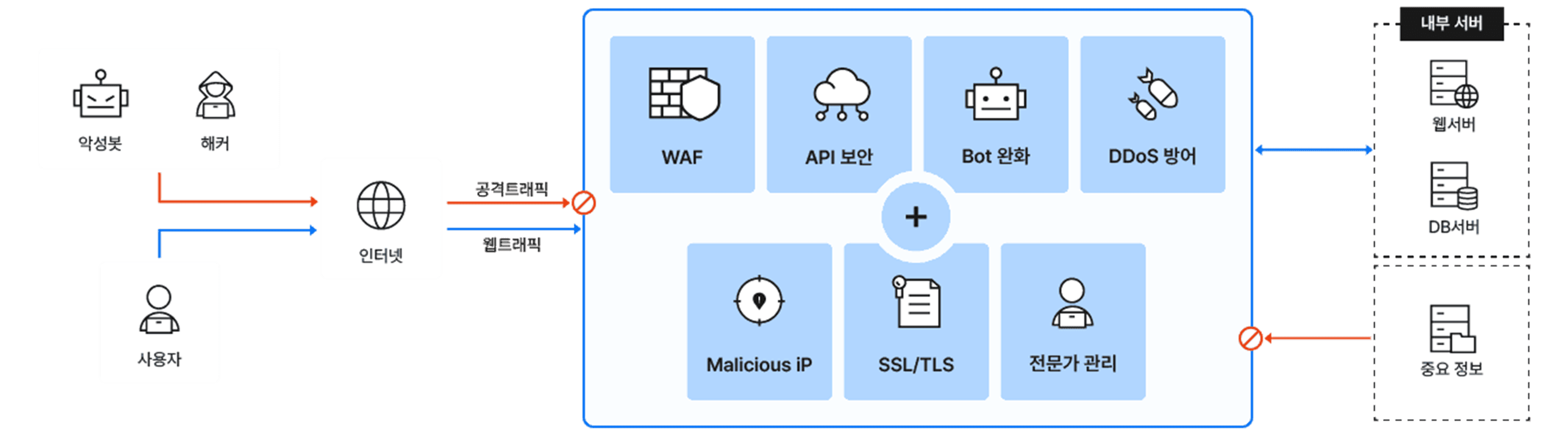 클라우드 기반의 **관리형 웹 애플리케이션 & API 보안 서비스(WAF)**를 제공합니다.