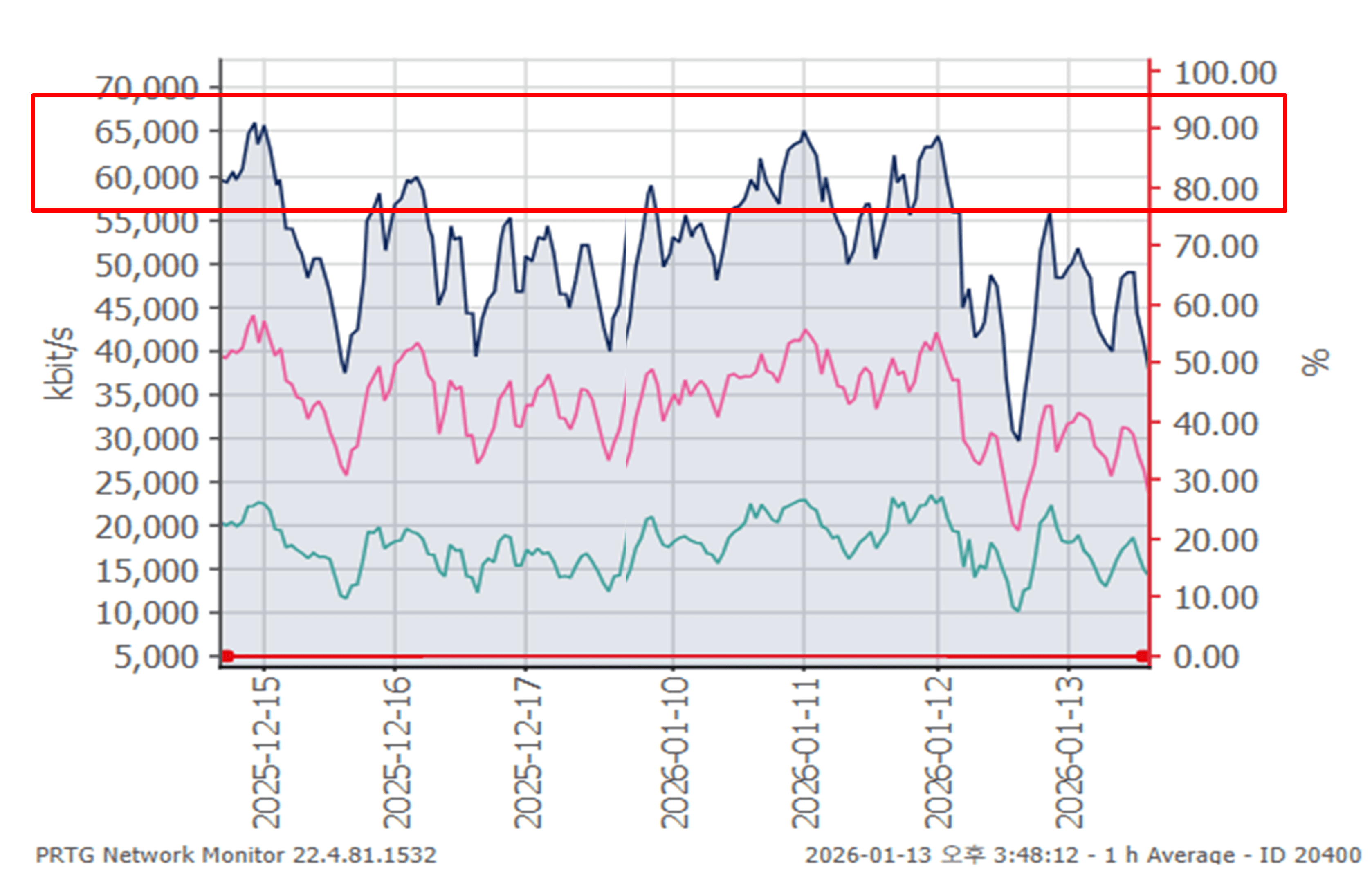 상위 80% 구간의 평균 사용량 : 약 60Mbps
